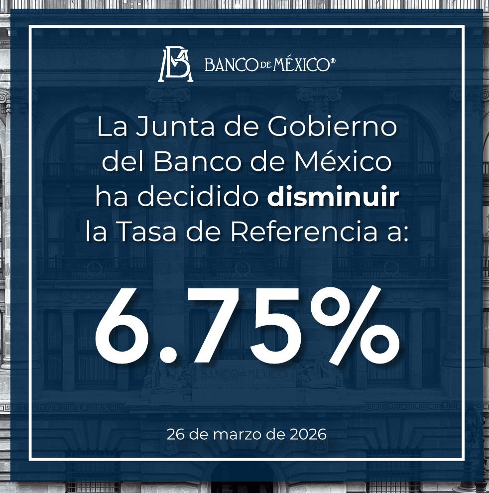 A partir de HOY el BANCO DE MÉXICO bajo la tasa de interés 25 puntos quedando en 6.75 % con efectos a partir de mañana